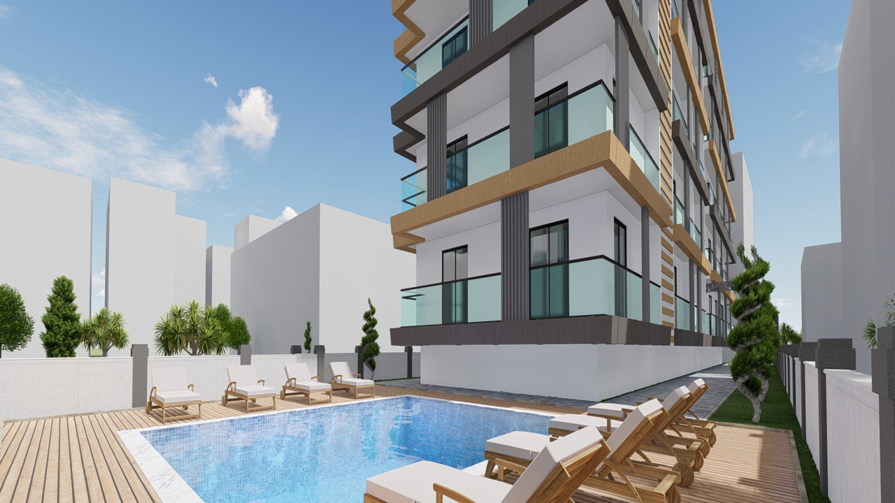 Комплекс City Sand в центре Алании миниатюрен. Это всего 30 квартир, располагающихся на 4 этажах. Из них 27 х (1+1) по 40-58 m2, 2 дуплеса х ( 2+1) по 115 m2 и 1 дуплекс ( 3+1) 135 m2.