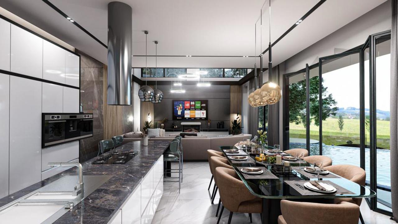 Эта вилла 4+2 площадью 380 м2 располагается в марине Алании на территории 632 м2, на расстоянии 500 метров от моря и отвечает самым высоким требованиям. Даже самые взыскательные покупатели найдут здесь все необходимое: сауна, хамам, фитнес, джакузи, зона для барбекю и бассейн. Здесь предусмотрена система видеонаблюдения. Вилла оснащена теплыми полами и системой «умный дом». Площадь террасы 170 м2.