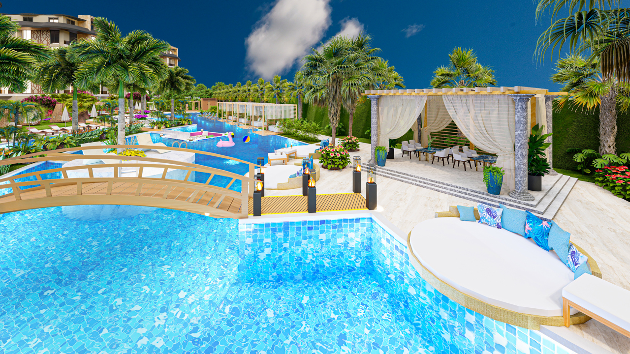 Инфраструктура комплекса включает открытый бассейн (700 м²), джакузи, детский бассейн, детскую площадку, кинотеатр под открытым небом, зоны отдыха, место для занятия йогой, working space, библиотеку, бильярд, настольный теннис, закрытый бассейн, турецкую баню, сауну, соляную комнату, парную, тренажёрныйл зал, детскую игровую комнату, кафе. Отдаленность от моря будет компенсирована здесь шаттлом до пляжа.