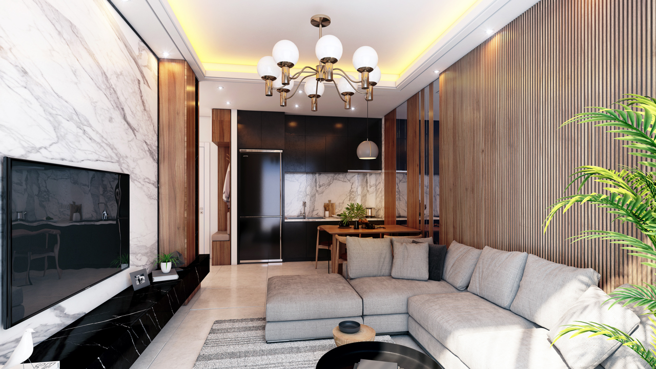 удобной планировки, что идеально подойдет как для постоянного проживания, так и для сдачи кварты в аренду. Здесь представлено 63 квартиры, 1+1, 2+1 и дуплексы 3+1. Квартиры сдаются в качественной чистовой отделке с укомплектованными санузлами и встроенным кухонным гарнитуром.