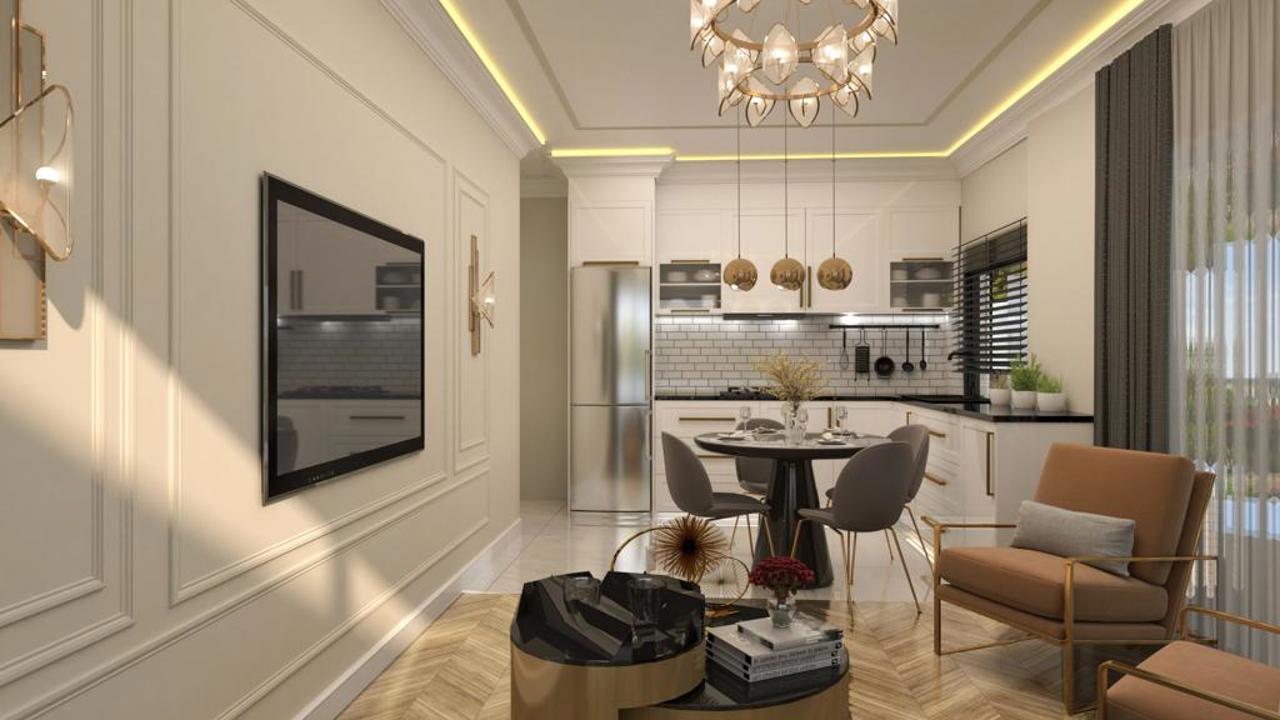 Здесь есть квартиры разного типа. Апартаменты 1+1 площадью 53-68 м2 , апартаменты 2+1 площадью 85-94 м2, пентхаусы 3+1 площадью 153- 164 м2. В стоимость квартиры включено: полная чистовая отделка, встроенный кухонный гарнитур, напольное покрытие, встроенная сантехника, полностью готовая ванная комната, межкомнатные двери, входная дверь. Проект GEN DELUXE TRIUMPH 3 реализован в нео-классическом стиле, ведь тренды приходят и уходят, а классика актуальна во все времена.