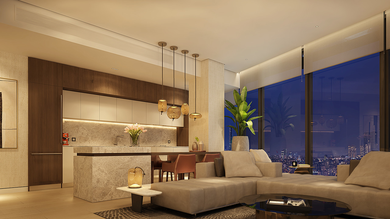 В Rams Beyond есть рестораны и бутики, эксклюзивный фитнес-центр, сауна, хамам и бесконечный бассейн, зоны отдыха, парковки большой вместимости и даже вертолетная площадка!